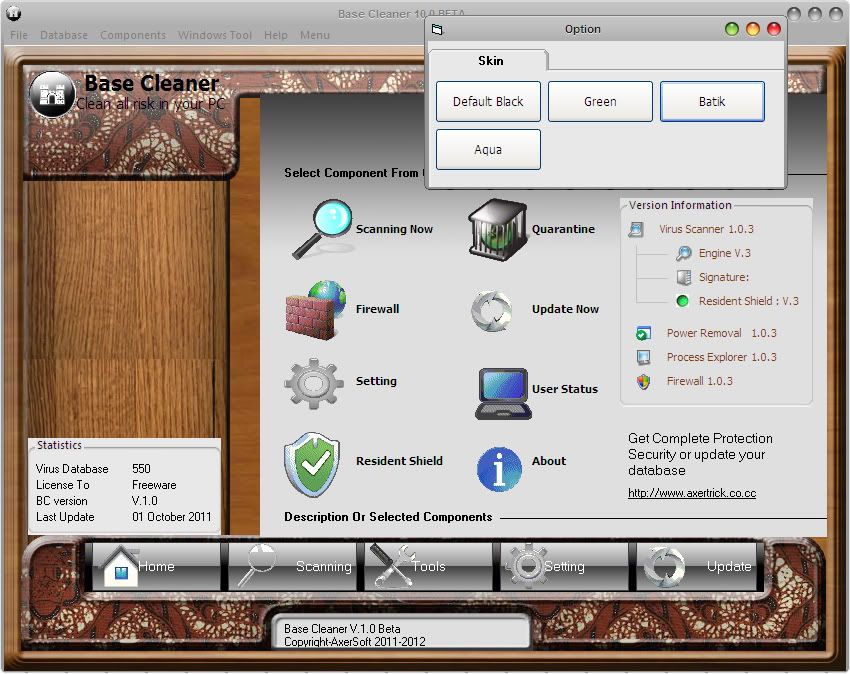 buatan seorang anak SMP kelas 3 (kelas 9) yaitu saya sendiri ALFON dan teman satu team saya, yang mengembangkan sebuah Source Code buatan Agung Adhi Satya. Base Cleaner masih bermula sebagai Antivirus yang akan mencoba merambah ke software keamanan yang lainnya. Base Cleaner masih mempunya banyak kelemahan, jadi bila agan menemukan banyak bug, harap kirimkan email ke axeolume@gmail.com. Langsung saja kita download Base Cleanernya: Base Cleaner v.1.0 Beta Ver